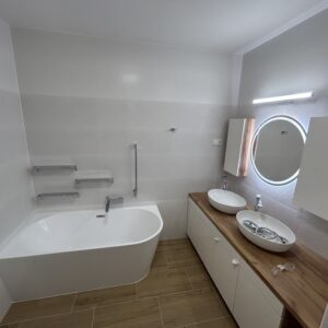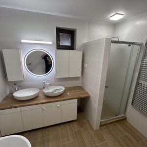 A kivitelezés során különös hangsúlyt fektettünk az elegáns megjelenésre, a modern anyaghasználatra és a precíz részletkialakításra. Célunk egy olyan élettér létrehozása volt, amely egyszerre tükrözi a megrendelő stílusát és biztosítja a legmagasabb szintű kényelmet.